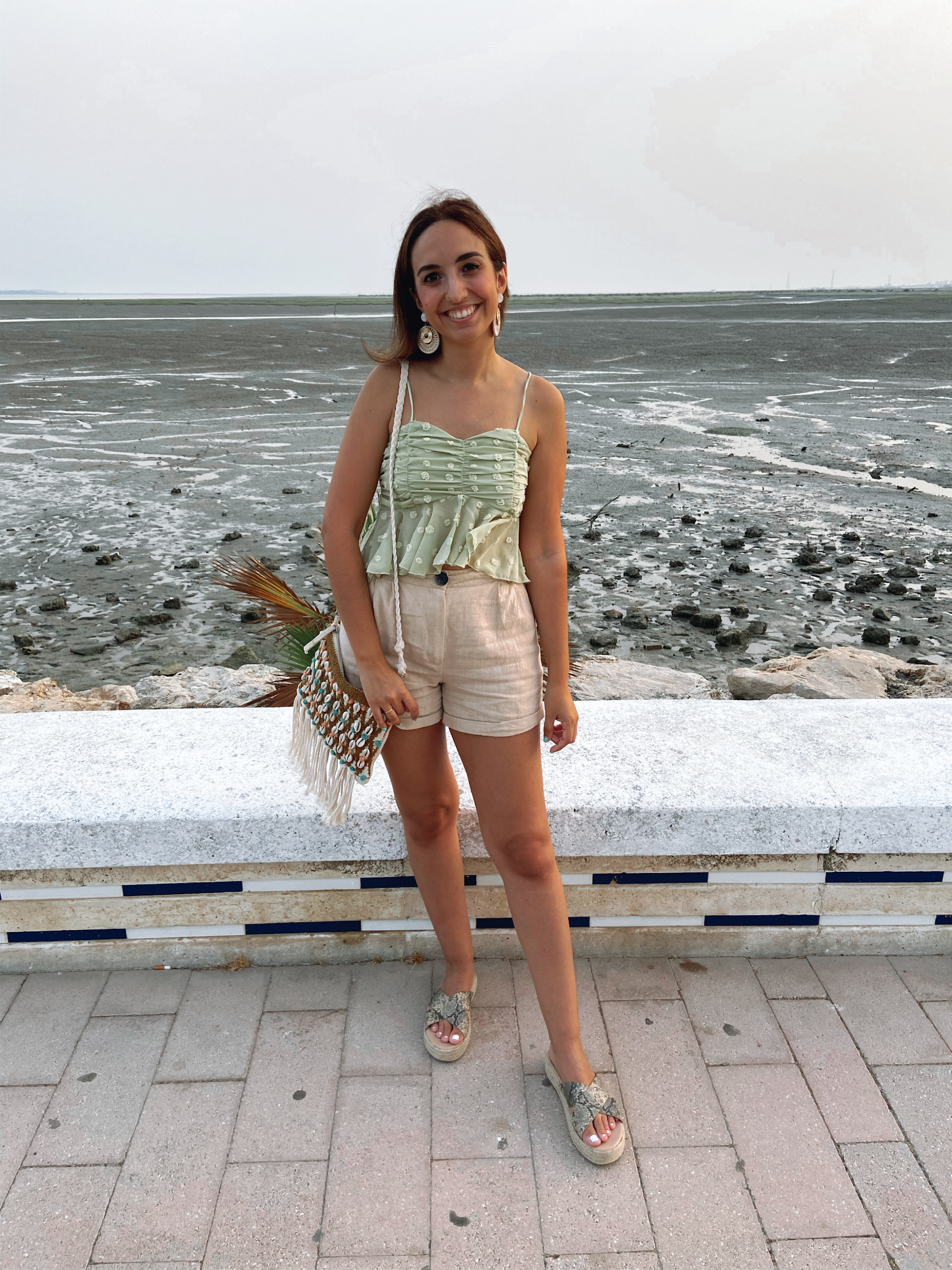 Llevé un crop top verde de Shein, La verdad que no suelo vestir mucho con este color pero me encantó, y sobre todo, cómo combinaba con el short beige.